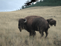 Par un temps clair, nous sommes passés par le Lake Flathead (24km de large et 45km de long), puis par une réserve d'indiens où il y avait très peu d'habitations, des petites routes et un décor très désertique. Puis, nous sommes allés visiter le National Bison Range de 15h à 17h45. Durant les 30km en voiture de ce parcours, nous avons fait quelques ballades et aperçus des chevreuils, des cerfs, des antilopes et de troupeaux de bisons. Le soir, nous nous sommes rendus au mauvais hôtel Holiday Inn de la ville de Missoula : manque de bol, on avait déjà sorti les valises de la voiture. Il ne nous restait plus qu'à les remettre dans le coffre. |