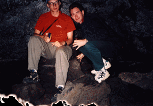 Visite du parc CRATERS OF THE MOON : promenades dans les champs de lave, le long des cratères, montée au sommet des cônes, dans les tunnels ainsi que dans des caves où j'ai réussi à me prendre en photo avec mon frère grâce au retardateur. A Twin Falls, nous avons essayé de recherchr un dentiste pour maman qui avait mal à une dent. Finalement, on est encore allé aux urgences de l'hôpital le soir après avoir mangé dans un resto mexicain. Après avoir entendu le coût de la consultation (150 à 200 $), nous sommes repartis. |