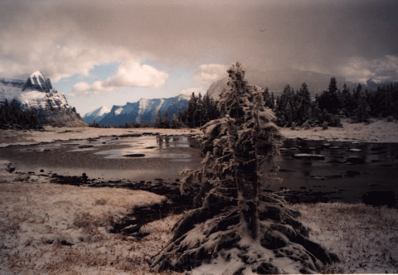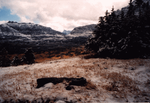 Nous séjournons pour 2 jours à l'hôtel casino de Kalispell. Cependant, aujourd'hui, nous sommes partis dans le parc national des glaciers. Après un petit arrêt au Lake McDonald, nous sommes montés jusqu'au Logan Pass situé à 2050m. Par une température hivernale et un vent frais, Joël et moi avons entrepris une super ballade en direction du Hidden Lake. Arrivé en haut d'un petit col, nous pouvions marcher dans la neige dans un décor de rêve (photos à côté) : supers contrastes entre les montagnes, les sapins enneigés, des lacs... |