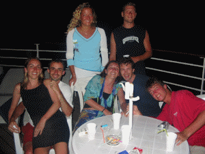 17h départ du bateau pour Bequia. Mouillage là bas vers 18h30. Avec Stef, Hanissa et Julie, nous avons joué au Kems avant de retrouver au restaurant Patrice et Caro (qui avaient manqué les deux derniers repas car ils sont arrivés à la bourre la veille : 21h40 sachant que le bateau devait partir à 21h30. |