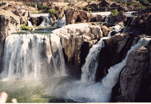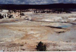 Tôt le matin, nous marchons vers les Shoshones Falls (65m de haut sur 300m de large), véritable Niagara de l'Ouest. Poursuite de la roure vers CRATERS OF THE MOON : parc constitué de cratères et de rochers datant de plus d'une centaine d'années. De nombreuses difficultés pour nous faire comprendre en anglais à l'arrivée au splendide hôtel du Yellowstone. |