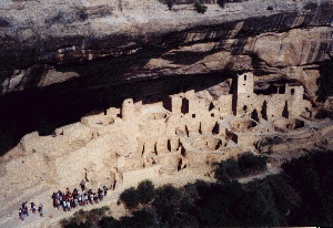 Après avoir déposé les bagages à l'hôtel de Cortex, nous sommes allés à Mesa Verde : maisons troglodites sous les falaises où vivaient les indiens autrefois. Le soir, on a pris un buffet avec choix de salades, de plats principaux, et choix de desserts pour le prix de 6,15 $ soit 30F à l'époque. |