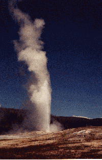 Visite de la partie sud du Yellowstone qui est surtout consacré aux geysers dont le plus impressionnant est le Old Faithful geyser (ci-contre) où les jets d'eau sont propulsés pendant 4 mn à une hauteur se situant entre 35 et 52 mètres. On a pu effectuer une belle ballade dans ce coin à travers des geysers très différents. Attention au vent où papa a failli perdre sa casquette : j'ai du aller la récupérer dans l'eau. La suite de notre route nous a amené dans le parc national du GRAND TETON : belles montagnes dont le point culminant est 4100m. Comme d'habitude, nous n'avons pas trouvé l'entré de l'hôtel le soir. Nous sommes d'abord passé par la piscine puis par le bar et le restaurant. Avant le repas, un petit tour dans le jacuzzi et dans la piscine (avec vue sur les montagnes) s'imposait vue la chaleur de cette belle journée. |