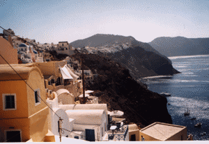 Nous avons loué des scooters pour faire le tour de l'île de Santorin. Au bout de l'île, nous avons visité le charmant village de Oia avec ses toits aux couleurs bleu-ciel. Après avoir mangé au restaurant à Pyrgos, nous avons continué jusqu'à une plage de sable noir à Périssa(au sud de l'îe). Sieste à l'ombre, car aujourd'hui il faisait très chaud au soleil. |