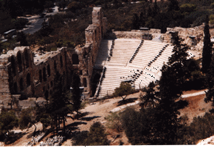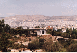 En fin de matinée, nous nous sommes séparés en 2 groupes : Cécile, Frédérique, Babette, Luc et Eric avaient leur avion dans l'après-midi tantis que Audrey, Sébastien, Arnaud et moi devions le prendre le lendemain matin. Visite de la ville d'Athènes : l'Acropole, l'Agora, puis le fameux quartier de la Plaka. Nous sommes allés voir le Palais avec la garde avant de nous promener dans le parc et de monter au Mont Likabett où nous avions une vue sur la ville d'Athènes. |