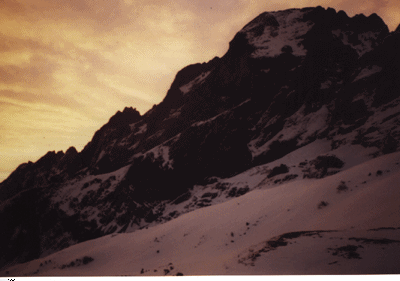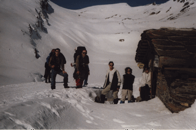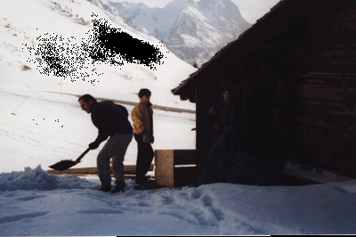 3h49 : départ de Strasbourg en train de bonne heure afin de ne pas arriver trop tard à Grindelwald et de profiter à fond d'une magnifique journée ensoleillée. 9h09 : arrivée à Grindelwald (1020m) après quand même 3 changements (Basel, Berne, Interlaken). Après avoir traversé le village, nous avons entamé la montée à la Grosse Scheidegg (950m de dénivélé): le début fut tranquille, mais à partir de 1400m, nous avons du marcher dans la neige et on s'enfonçait régulièrement jusqu'aux genoux. Là bas, nous avons trouvé heureusement une petite remise (1m50 de large : galère pour dormir la nuit) pour y passer la nuit. Merguez, saucisses le soir auprès d'un feu avant de se réchauffer sous les sacs de couchage : la nuit par -3° s'annonçait rude... |