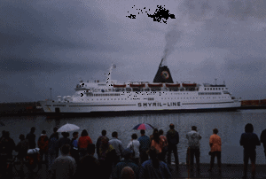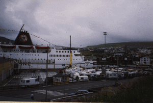 En ce 28 juillet, c'est la fête nationale aux îles Féroés. Après une dernière visite de la capitale Torshawn, nous sommes allés au port pour prendre le bateau en direction de l'Islande cette fois-ci. Ce dernier est parti à 15 heures. Beaucoup de vent, donc une mer agitée : impossible de marcher droit tellement le bateau bougeait dans tous les sens : d'ailleurs beaucoup de monde avait le mal de mer. Courageux, avec mon frère, nous étions jusqu'à 21 heures à l'avant du bateau. |