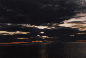 Chengement d'horaire : il faut reculer les montres d'une heure. Temps splendide durant cette journée : on a pu apercevoir les différentes étapes du magnifique coucher du soleil. Le soir, difficile de dormir car les vagues en s'échouant sur la coque font beaucoup de bruit. |