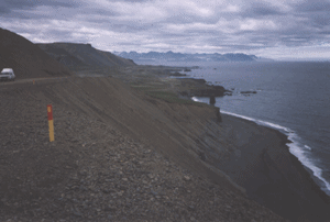 12h05 : Budareyri : situé à la tête du plus grand fjord de la côte est. 14h05 : Budir : au dessus, on peut voir la montagne Sandfell une parite d'un système volcanique. 16h : arrivée à Breiddalsvik, un petit village de 260 habitants. |