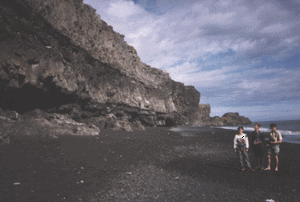 Juste après Skaftafell, nous avons franchi le plus long pont d'Islande (904m). Il permet depuis 1974 la liaison entre l'est et dle sud de l'île. Après Kirkjubajarklaustur, nous avons traversé un immense champs de laves (ci-contre) qui s'étend sur 60 km de long et 23 km de large. Sous un beau ciel bleu, nous avons fait un détour vers les falaises aux oiseaux dont les fameux macareux et la plage (eau à 15°). 18h15 arrivée à l'hôtel de Skogar où nous avons pris un buffet au restaurant le soir. |