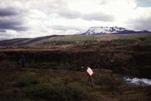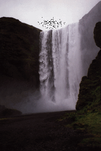 Avant de quitter Skogar, nous sommes allés voir la cascade Skogafoss (ci-ontre) : chute d'eau d'une hauteur de 60m). Nous avons fait plus tard une ballade vers le volcan Heckla (le plus connu et le plus visité d'Islande (ci-dessous). Jusqu'à Fludir, les routes étaient très mauvaises (sables et petits cailloux). Le soir, nous n'avons pas eu du mal à trouver l'hôtel cette fois-ci, mais le problème a été pour retrouver la chambre qui se trouvait dans un bâtiment annexe juste à côté de l'hôtel. |