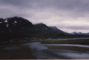7h : arrivée du bateau à Seydisfjördur en ISLANDE. 8h50 : nous sommes endin sorti avec la voiture du bateau. Le tour de l'île pouvait maintenant commencer. De Seydisfjördur à Egilsstadir, les montagnes s'abaissaient abruptement dans les multiples petits fjords qui entaillent la côte. |