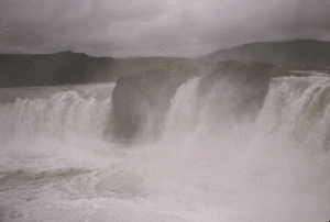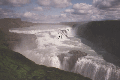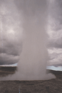 Au programme de cette belle journée : les magnifiques chutes d'eau de Gullfoss d'une hauteur de 32m (ci-dessous) ainsi que GEYSIR (ci-contre). Ce parc de geysers s'étend sur 31 km2 et 120m d'altitude. Un geyser se compose d'un petit cratère dans lequel se déverse l'eau. La colonne d'eau exerce au fond du geyser une pression considérable. La chaleur provoque un jaillissement de cette colonne toutes les 10 mn environ.