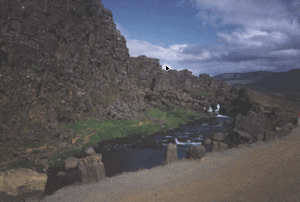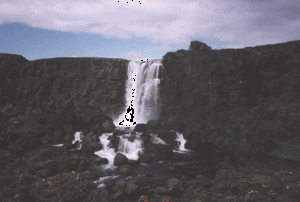 Après un bon petit déjeuner buffet, nous sommes allés en direction de Thingvellir, une vaste plaine recouverte de coulées de lave solidifiée et maintenant verdoyante qui s'allonge dans un amphithéâtre. Ci-dessous à droite, on peut y voir la cascade Oxarifoss. En fin d'après-midi, nous étions dans la capitale de l'Islande : Reykjavik : énorme difficulté pour se faire comprendre à l'hôtel. Ils parlaient très peu l'anglais. |