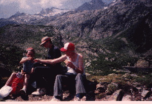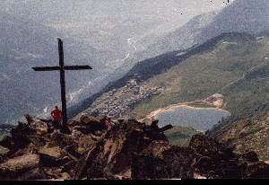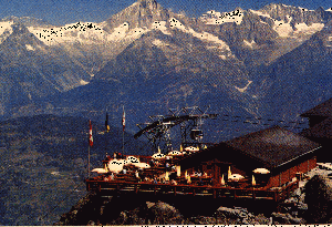 Platja (2520m) - Seetalhorn (2870m) : durée : 3h45 et 4h15 en passant par Gasenried ce que nous avons fait, mais nous n'avions pas prévu d'aller si haut. On y est monté car on n'avait plus d'eau et on pensait se désaltérer en haut. Manque de bol, arrivé après 16h, le restaurant venait de fermer. J'ai encore réussi à demander de l'eau à l'arrivée du télécabine. Elle était chaude, mais cela permettait quand même de s'essuyer les lèvres. A 17h, une descente de 3h15 et de 1253m de dénivélation nous attendait encore.